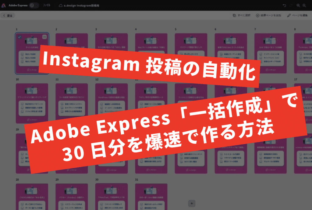 Instagram投稿の自動化|Adobe Express「一括作成」で1ヶ月分を爆速で作る方法
